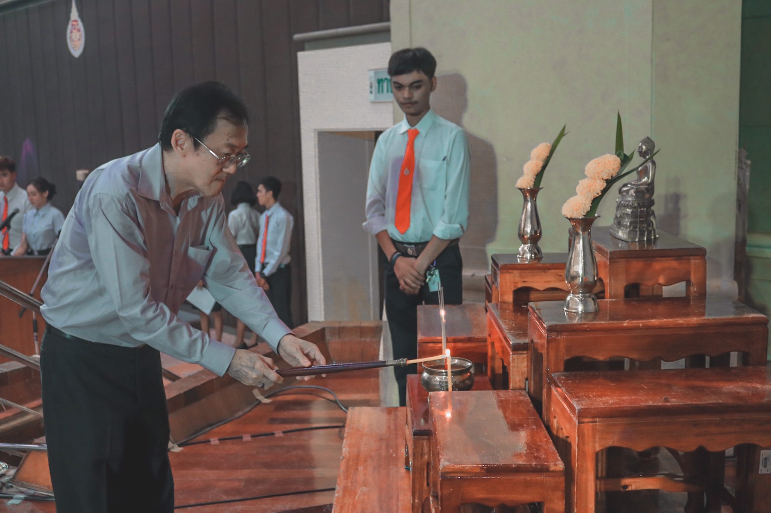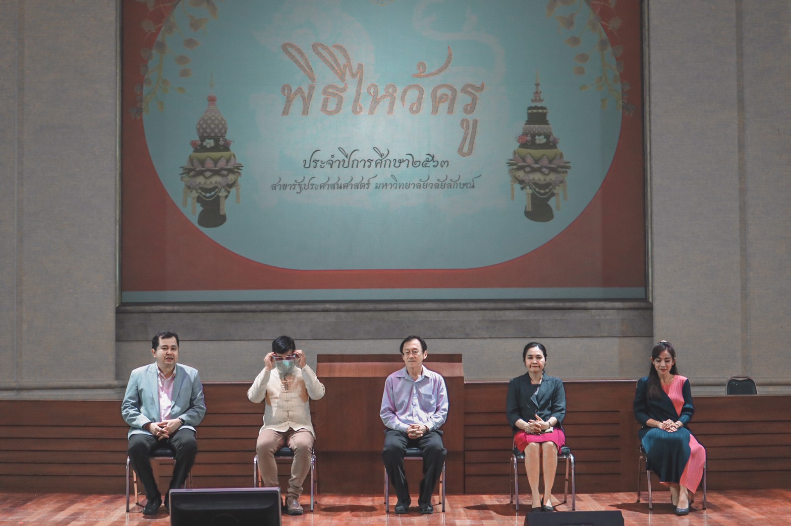 กิจกรรมไหว้ครูหลักสูตรรัฐประศาสนศาสตร์ ปีการศึกษา 2563 หลักสูตรรัฐประศาสนศาสตร์ ได้จัดกิจกรรมไหว้ครูและผูกข้อมือให้กับนักศึกษา ประจำปีการศึกษา 2563 เมื่อวันพฤหัสบดีที่ 20 สิงหาคม 2563 ณ ห้องประชุมใหญ่ อาคารไทยบุรี โดยมีคณบดีสำนักวิชารัฐศาสตร์และนิติศาสตร์ คณาจารย์ในหลักสูตร และนักศึกษาทุกชั้นปีเข้าร่วมกิจกรรม ทั้งนี้ ในช่วงท้ายของกิจกรรมได้รับเกียรติจากท่านคณบดี และหัวหน้าสาขาวิชาฯ ได้ให้โอวาทแก่นักศึกษาในครั้งนี้