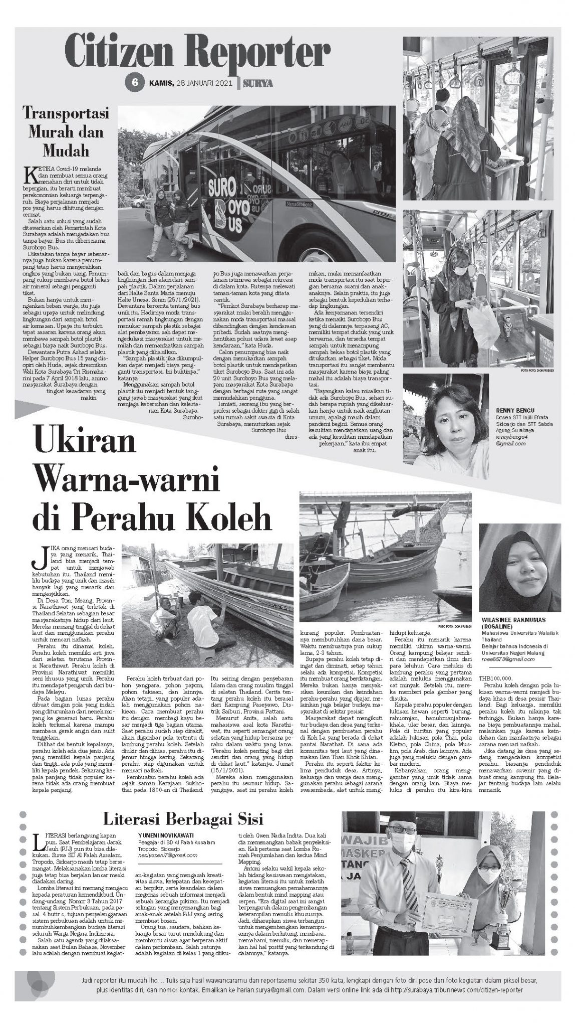 บทความภาษาอินโดนีเซียเรื่อง “Ukiran Warna-warni di Perahu Koleh” (การแกะสลักหลากสีบนเรือกอและ) เขียนโดยนางสาววิลาศิณี รักหมู่มาศ นักศึกษาหลักสูตรอาเซียนศึกษาชั้นปีที่ 3 สำนักวิชารัฐศาสตร์และนิติศาสตร์ มหาวิทยาลัยวลัยลักษณ์ ได้รับคัดเลือกให้ตีพิมพ์ใน Surya หนังสือพิมพ์แนวหน้าของชวาตะวันออก ประเทศอินโดนีเซีย