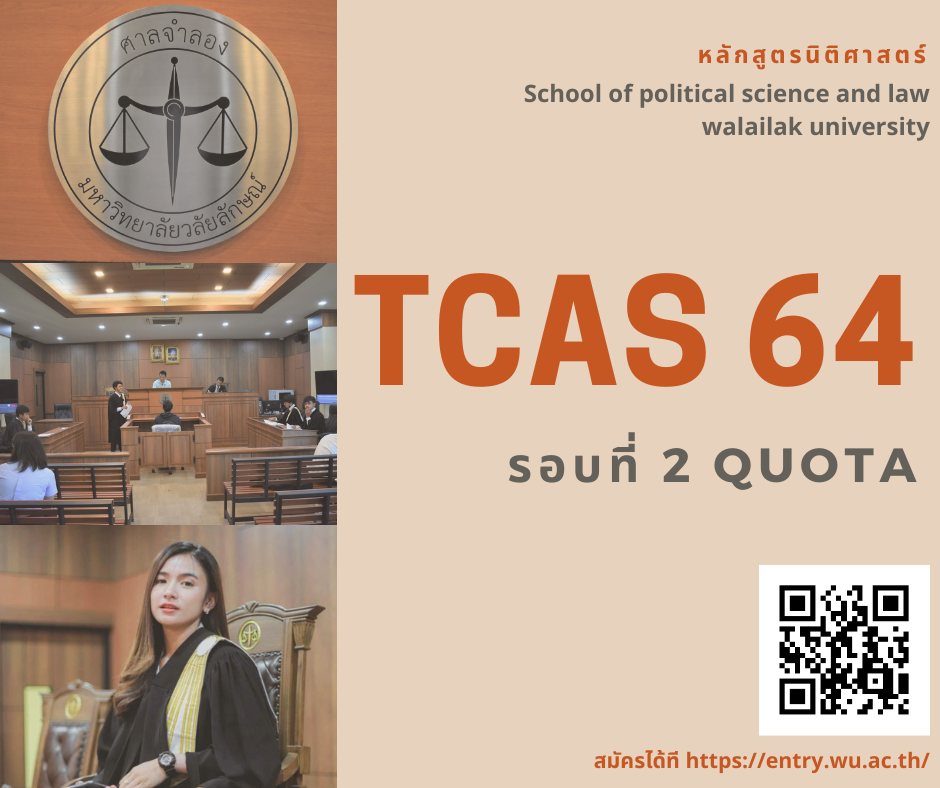 สำนักวิชารัฐศาสตร์และนิติศาสตร์รับสมัครนักศึกษาใหม่ ปีการศึกษา 2564 รอบที่ 2 โควตาพื้นที่