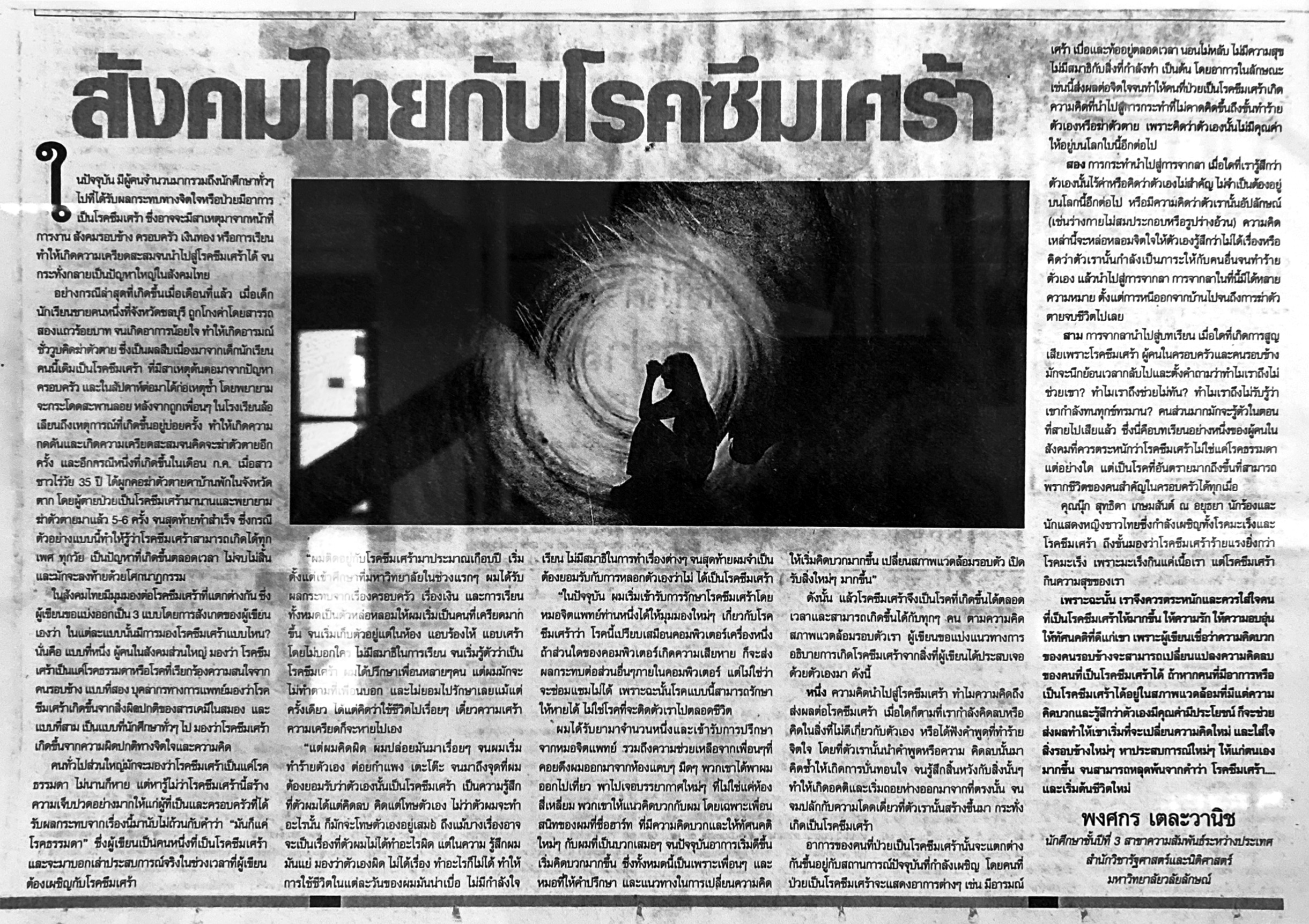 บทความของนายพงศกร เตละวานิช นักศึกษาชั้นปีที่ 3 วิชาเอกความสัมพันธ์ระหว่างประเทศ ได้รับการพิจารณาตีพิมพ์เผยแพร่บนเว็บไซต์มติชนออนไลน์ ในบทความเรื่อง “สังคมไทยกับโรคซึมเศร้า” ชิ้นนี้ พงศกรได้วิเคราะห์และทำความเข้าใจโรคซึมเศร้าจากประสบการณ์ส่วนตัวของตน เริ่มต้นจากการเผยให้เห็นความเข้าใจคลาดเคลื่อนของผู้คนทั่วไปต่อโรคซึมเศร้า บอกเล่าประสบการณ์ และพยายามอธิบายโรคซึมเศร้าอย่างเป็นระบบเพื่อสร้างความเข้าใจแก่ผู้อ่าน นอกจากนี้ บทความยังได้เสนอแนะแนวทางเพื่อที่ผู้อ่านจะได้ร่วมสร้างภาวะ “คิดบวก” และช่วยกันประคับประคองผู้ที่กำลังอยู่ในภาวะซึมเศร้าได้ก้าวต่อไปข้างหน้าได้อย่างมั่นคง