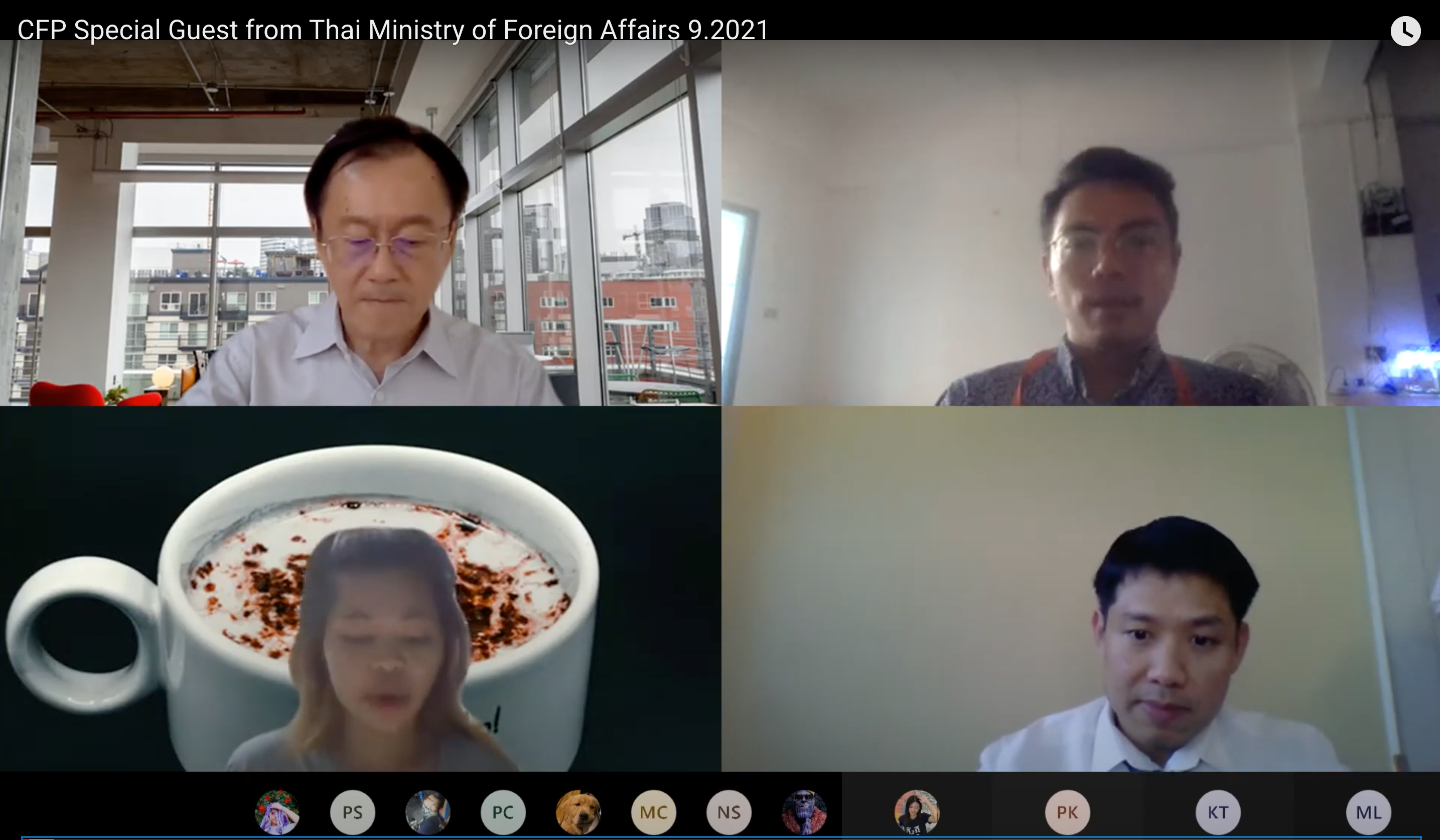 รายวิชา POS-368 และPOS64-444 นโยบายต่างประเทศของจีน ซึ่งเปิดสอนในภาคการศึกษาที่ 1/2564 โดยอาจารย์ฮวง เหวียน ฮุย ได้เชิญนายโกศล สถิตธรรมจิตร ผู้อำนวยการกองเอเชียตะวันออก 3 กรมเอเชียตะวันออก กระทรวงการต่างประเทศ มาเป็นวิทยากรบรรยายพิเศษผ่านระบบออนไลน์ในหัวข้อ “ความสัมพันธ์ระหว่างสาธารณรัฐประชาชนจีนกับไทย” เมื่อวันที่ 2 กันยายน 2564 เวลา 13.00-15.00 น.