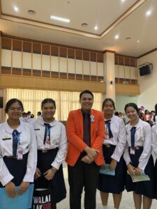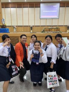 และในช่วง “เวทีแนะแนวการศึกษาต่อ” ได้รับเกียรติจาก ผู้ช่วยศาสตราจารย์ ดร.นีรนาท แก้วประเสริฐ ระฆังทอง รักษาการแทนคณบดีสำนักวิชารัฐศาสตร์และรัฐประศาสนศาสตร์ และในฐานะ ผู้อำนวยการศูนย์บริการการศึกษา ได้ร่วมพูดคุยและแลกเปลี่ยนกับนักเรียนในหัวข้อ “แนวทางการศึกษาต่อมหาวิทยาลัยวลัยลักษณ์ หลักสูตรที่ใช่ อาชีพที่ชอบ” โดยเน้นย้ำถึงการออกแบบหลักสูตรที่ตอบโจทย์ความต้องการของตลาดแรงงาน และการสนับสนุนให้นักศึกษาได้พัฒนาตนเองอย่างรอบด้านทั้งด้านวิชาการและทักษะชีวิต
