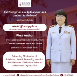 บทความเรื่อง “Enhancing Efficiencies of Subdistrict Health Promoting Hospital Post-Transfer of Missions to Local Government Organization”