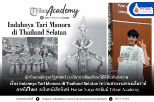 นายธีรภัทร์ เกื้อกาญจน์ นักศึกษาชั้นปีที่ 3 หลักสูตรรัฐศาสตร์ วิชาเอกอาเซียนศึกษา ได้ตีพิมพ์บทความ เรื่อง “ความสวยงามของมโนราห์ภาคใต้ไทย” (Indahnya Tari Manora di Thailand Selatan) ลงในหนังสือพิมพ์ Harian Surya คอลัมน์ Tribun Academy ซึ่งเป็นหนังสือพิมพ์ท้องถิ่นชวาตะวันตก ประเทศอินโดนีเซีย งานชิ้นนี้ตั้งใจนำเสนอเกี่ยวกับความงดงาม และความสำคัญของการรำมโนราห์ ศิลปะการแสดงพื้นบ้านของภาคใต้ประเทศไทย มโนราห์ไม่ได้เป็นเพียงการแสดงเพื่อความบันเทิง แต่ยังมีความเกี่ยวข้องกับความเชื่อ พิธีกรรม และวิถีชีวิตของชุมชน การแสดงมีเอกลักษณ์โดดเด่น ทั้งท่ารำที่อ่อนช้อย เครื่องแต่งกายสีสันสดใส และมงกุฎที่เรียกว่า “เทริด” แม้สังคมจะเปลี่ยนแปลงไปตามยุคสมัย แต่มโนราห์ยังคงได้รับการอนุรักษ์และสืบทอดในฐานะมรดกทางวัฒนธรรมที่สำคัญของภาคใต้ไทย