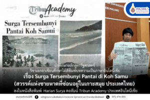 นายชนาธิป แก้วประคอง นักศึกษาชั้นปีที่ 3 หลักสูตรรัฐศาสตร์ วิชาเอกอาเซียนศึกษา ได้ตีพิมพ์บทความ เรื่อง “สวรรค์แห่งชายหาดที่ซ่อนอยู่ในเกาะสมุย ประเทศไทย ” (Surga Tersembunyi Pantai di Koh Samui) ลงในหนังสือพิมพ์ Harian Surya คอลัมน์ Tribun Academy ซึ่งเป็นหนังสือพิมพ์ท้องถิ่นชวาตะวันตก ประเทศอินโดนีเซีย งานชิ้นนี้ตั้งใจนำเสนอสถานที่ท่องเที่ยวอย่างชายหาดของเกาะสมุย ซึ่งเป็นแหล่งท่องเที่ยวทางทะเลที่มีชื่อเสียงของประเทศไทย ซึ่งเป็นความภาคภูมิใจของจังหวัดสุราษฎร์ธานี ซึ่งเป็นหนึ่งในจังหวัดทางภาคใต้ในประเทศไทย เกาะสมุยตั้งอยู่ในจังหวัดสุราษฎร์ธานี และเป็นเกาะที่ใหญ่เป็นอันดับสามของประเทศไทย ที่นี่มีชายหาดที่สวยงาม น้ำทะเลใส และทิวทัศน์ของต้นมะพร้าวที่เป็นเอกลักษณ์ นักท่องเที่ยวสามารถทำกิจกรรมต่าง ๆ ได้หลากหลาย เช่น ขี่เจ็ตสกี ดำน้ำสน็อกเกิลตามเขตปะการังรอบเกาะสมุยและบริเวณเกาะโดยรวม ไปจนถึงรับชมกิจกรรมการแสดงอันน่าตื่นตาตื่นใจระหว่างพักผ่อนริมชายหาด นอกจากนี้ยังมีชายหาดที่มีชื่อเสียงสำคัญ เช่น หาดเฉวงและหาดละไม ซึ่งมอบทั้งประสบการณ์สนุกสนานของกิจกรรมต่าง ๆ และมอบบรรยากาศอันเงียบสงบในยามพลบค่ำ ด้วยธรรมชาติที่สวยงาม และสิ่งอำนวยความสะดวกที่ครบครัน เกาะสมุยจึงเป็นสถานที่ท่องเที่ยวที่เหมาะสำหรับการพักผ่อนจากวันที่งานหนัก และเหมาะสำหรับผู้ที่ชื่นชอบการท่องเที่ยวในพื้นที่ทะเลเขตร้อน อันเป็นเอกลักษณ์ของประเทศไทย