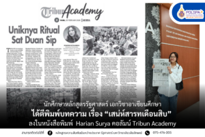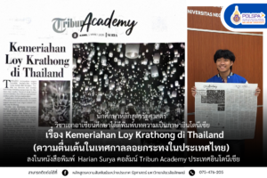 นายกฤตนัย บุตรครุธ นักศึกษาชั้นปีที่ 3 หลักสูตรรัฐศาสตร์ วิชาเอกอาเซียนศึกษา ได้ตีพิมพ์บทความ เรื่อง “ความตื่นเต้นในเทศกาลลอยกระทงในประเทศไทย” (Kemeriahan Loy Krathong di Thailand) ลงในหนังสือพิมพ์ Harian Surya คอลัมน์ Tribun Academy ซึ่งเป็นหนังสือพิมพ์ท้องถิ่นชวาตะวันตก ประเทศอินโดนีเซีย งานชิ้นนี้ตั้งใจนำเสนอประเพณีลอยกระทง ซึ่งเป็นหนึ่งในเทศกาลวัฒนธรรมที่สำคัญของประเทศไทย ประเพณีนี้จัดขึ้นทุกปีในคืนวันเพ็ญเดือนสิบสองตามปฏิทินไทย ในวันนี้ผู้คนจะทำกระทงจากใบตอง ดอกไม้ ธูป และเทียน แล้วนำไปลอยในแม่น้ำหรือทะเลสาบ ประเพณีลอยกระทงยังมีจุดประสงค์เพื่อขอขมาต่อพระแม่คงคาและแสดงความขอบคุณต่อธรรมชาติ นอกจากนี้ยังเป็นช่วงเวลาที่ครอบครัวและผู้คนได้มารวมตัวกันเพื่อเฉลิมฉลองวัฒนธรรมไทย ดังนั้นลอยกระทงจึงเป็นวัฒนธรรมที่งดงามและควรรักษาไว้ต่อไป