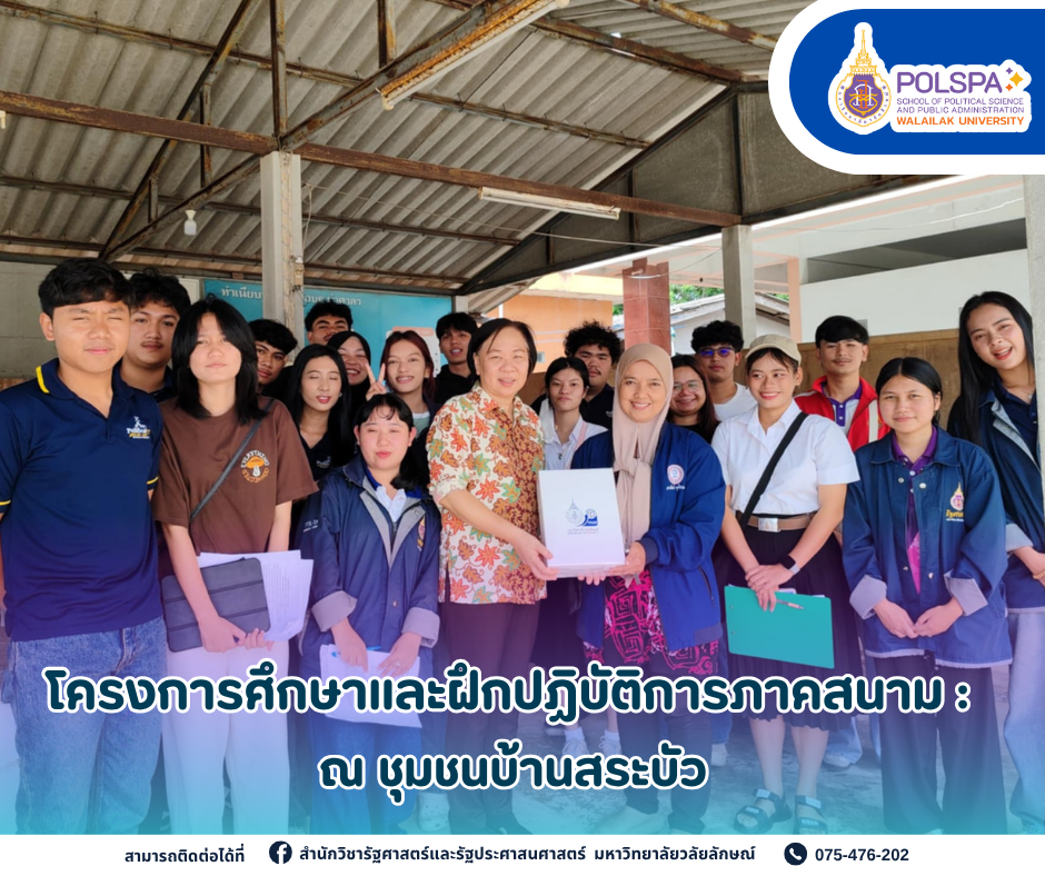 หลักสูตรรัฐศาสตร์ความสัมพันธ์ระหว่างประเทศ ม.วลัยลักษณ์ จัดโครงการศึกษาและ ฝึกปฏิบัติการ ภาคสนาม : ณ ชุมชนบ้านสระบัว Read More » กรกฎาคม 10, 2025
