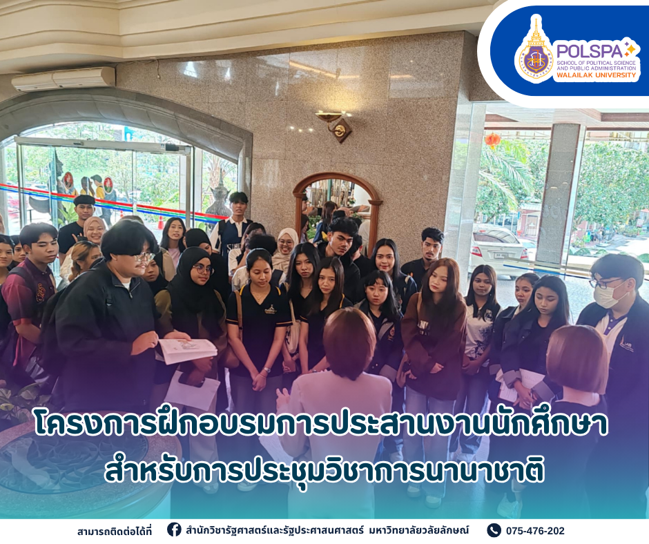 หลักสูตรรัฐศาสตรความสัมพันธ์ระหว่างประเทศ ม.วลัยลักษณ์ จัดโครงการฝึกอบรมการประสานงานนักศึกษาอย่างครอบคลุมสำหรับการประชุมวิชาการนานาชาติ Read More » กรกฎาคม 10, 2025