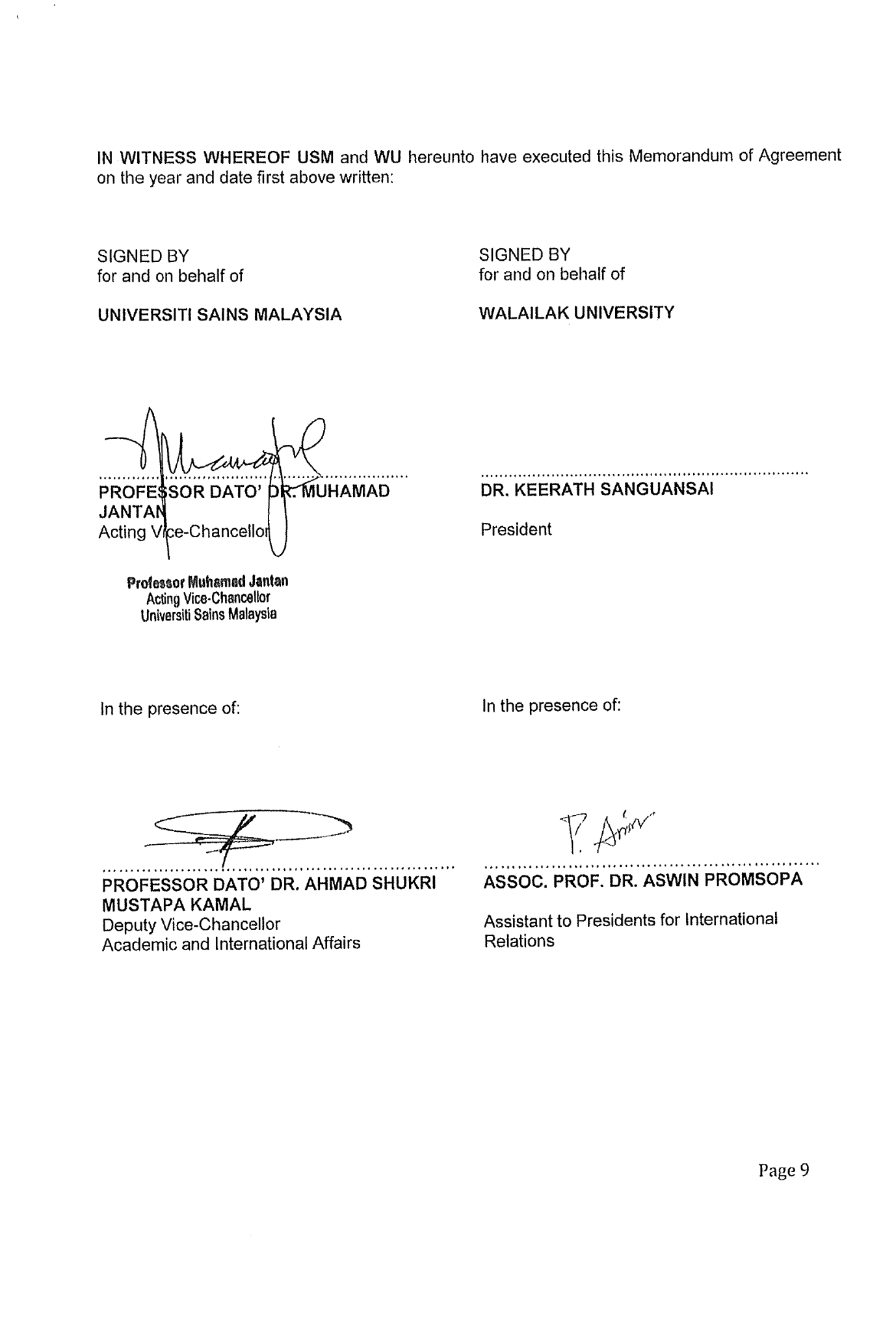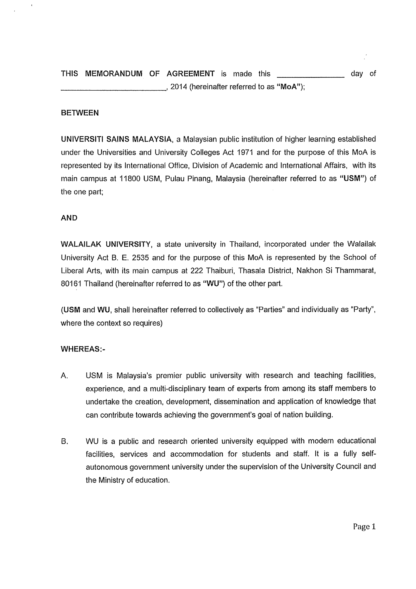 Walailak University and USM have a Memorandum of Understanding for Academic Cooperation and have continued to collaborate academically, such as co-organizing a Thai-Malaysian writers conference and co-hosting a seminar for the Indonesia-Malaysia-Thailand Growth Triangle (IMT-GT). For many years, USM had welcomed students from Walailak University to study Malay language there. Cooperation with USM is also part of the School of Political Science and Laws’ foreign relations strategy.
