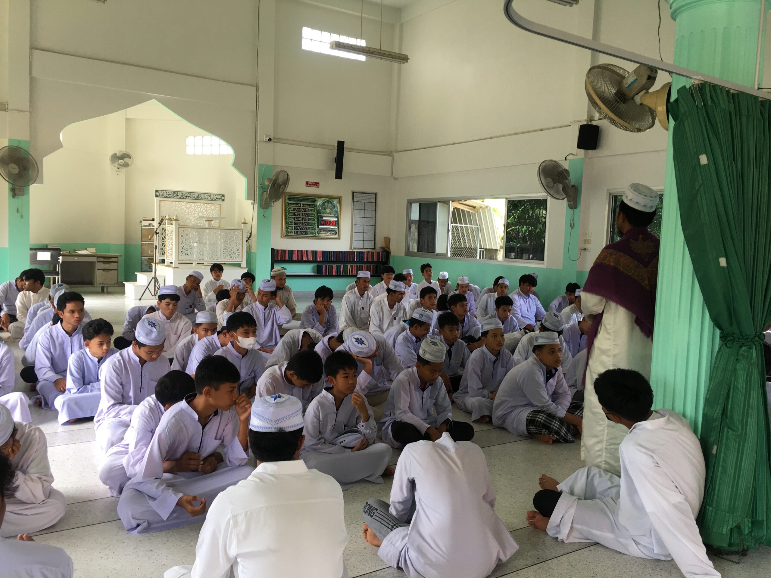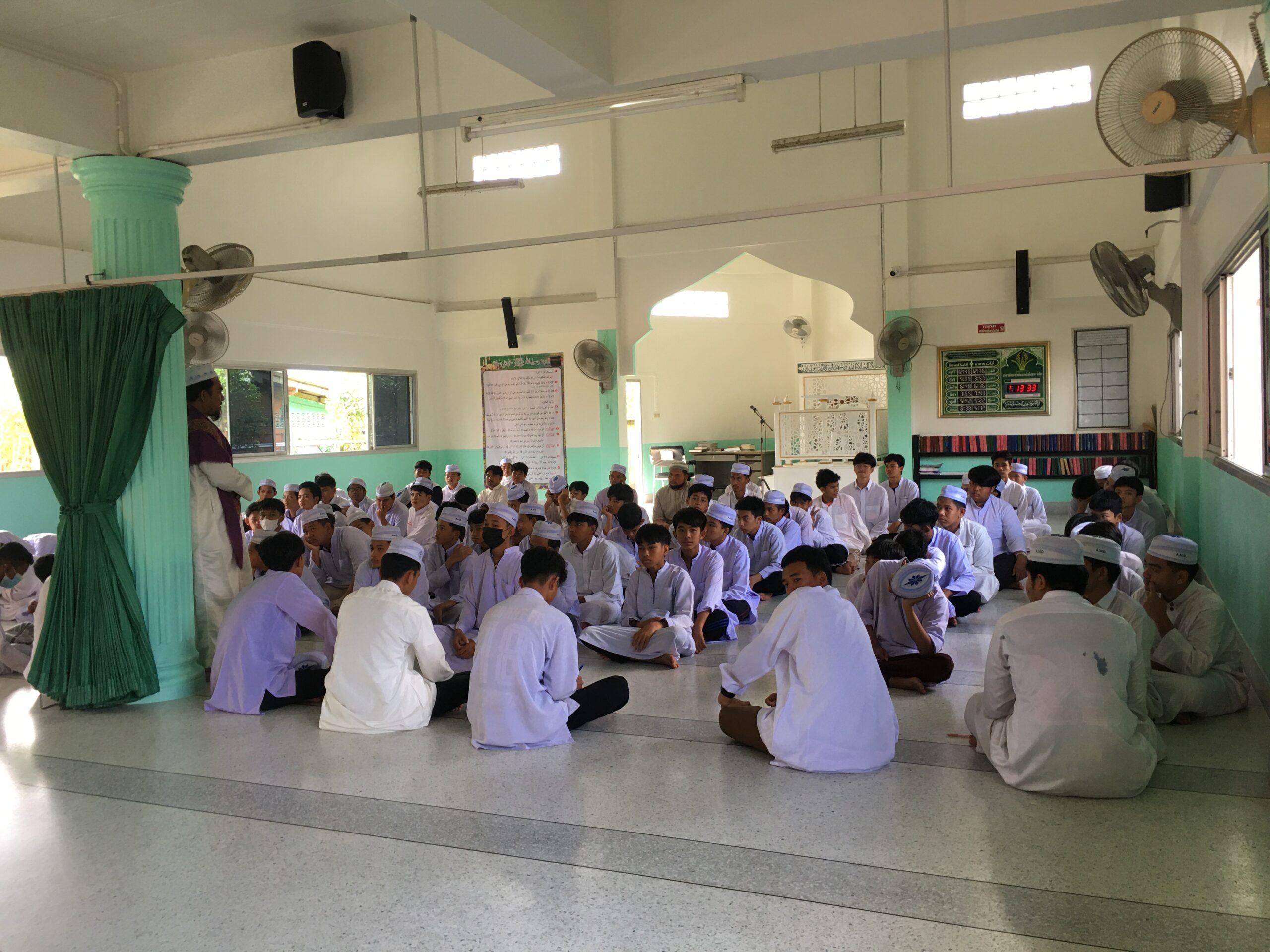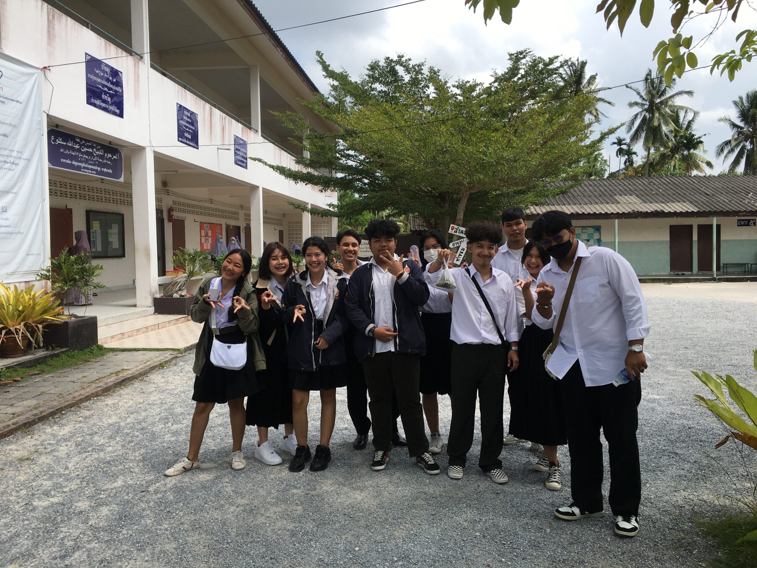 The course therefore organizes learning activity outside the classroom at Al-Muvahhideen School and Klong Din Community. The speakers were Ajarn Basri Darakai, School Manager, Ajarn Manat Darakai, Assistant School Manager, Ajarn Padta Darakai, School Director, and students in Grade 11 who gave knowledge to the students about the history of Islam religious principles and important religious activities, especially the funeral. The history of Al-Muvahhideen School and Ban Khlong Din Community, Na Khian Sub-district, Mueang District, Nakhon Si Thammarat Province were included in the lecture contents as well. The activity was held on Friday, February 17, 2023, from 1:00 PM – 4:00 PM, at Al-Muvahhideen School. There were 12 faculty members and students participating in this activity.