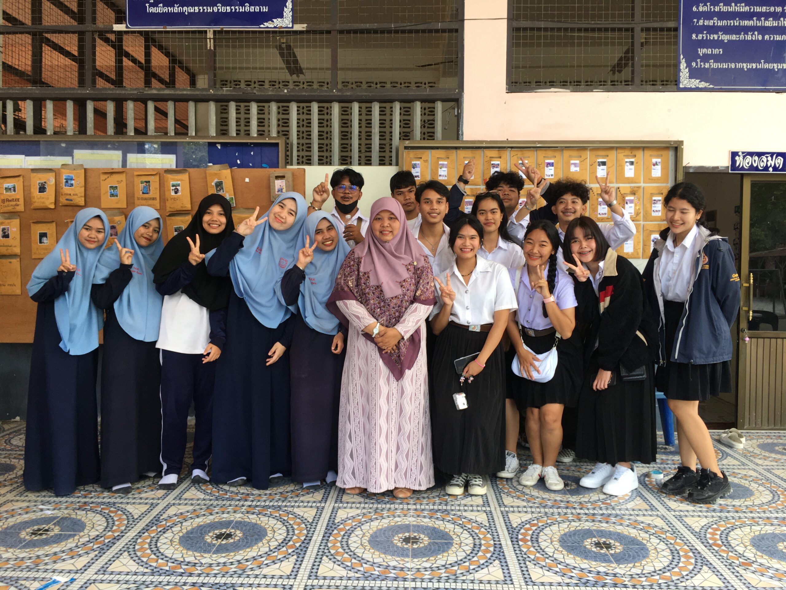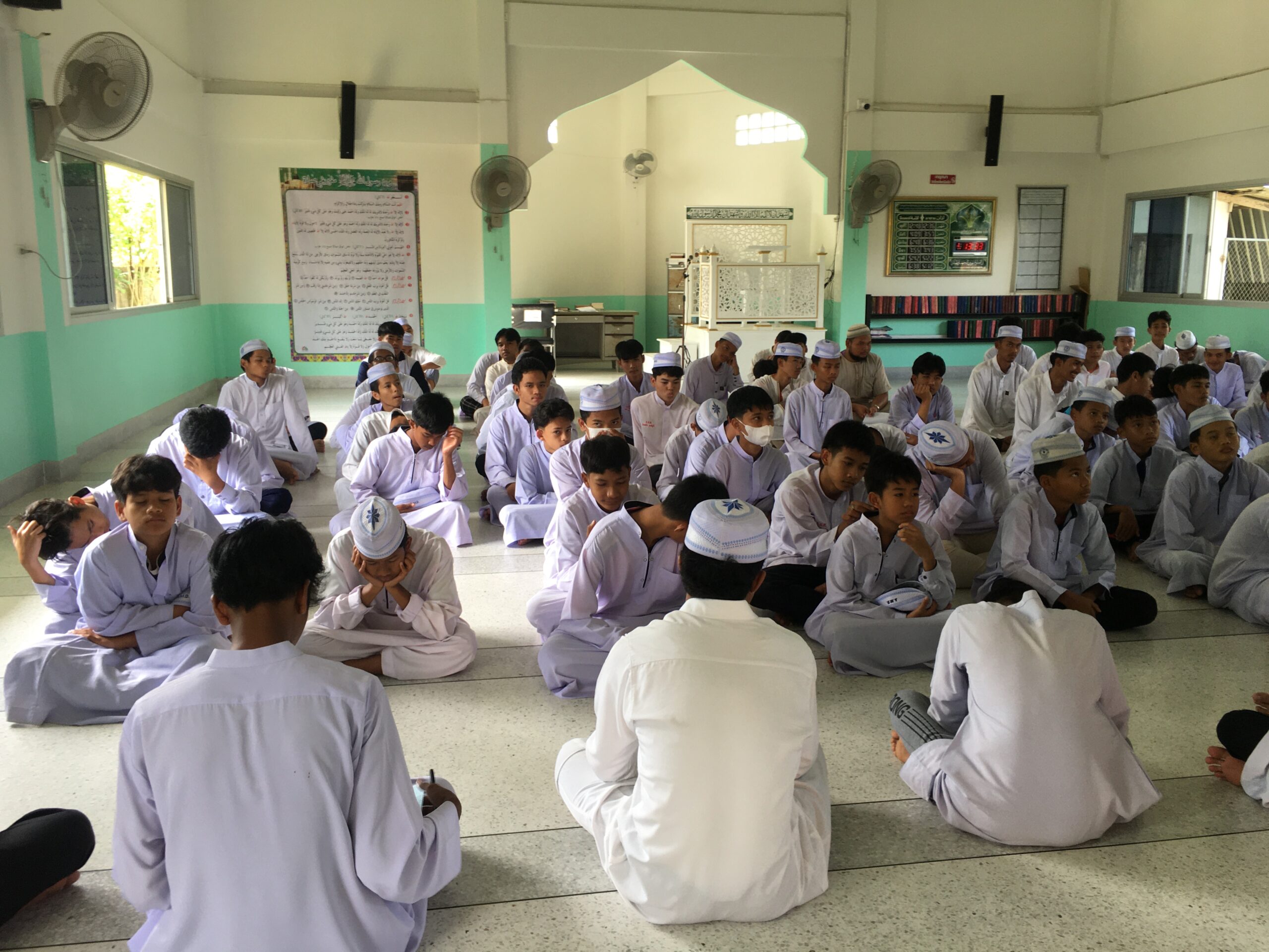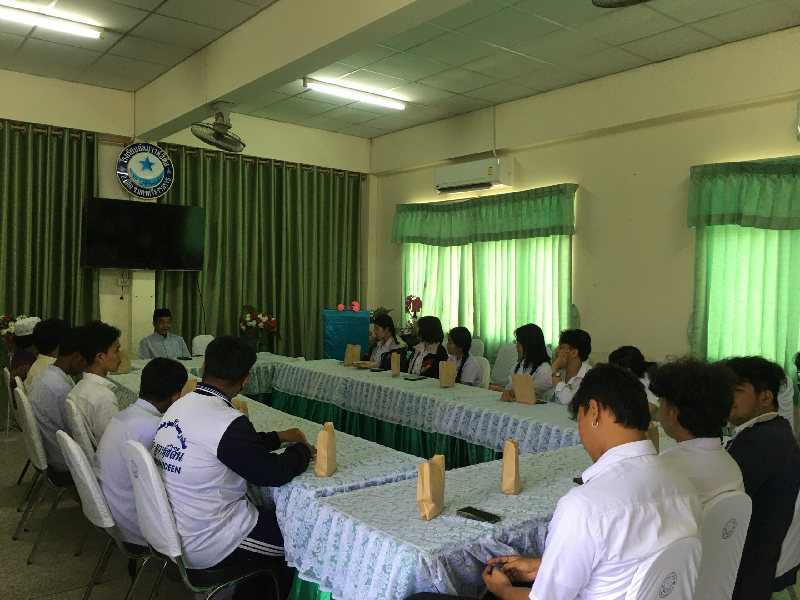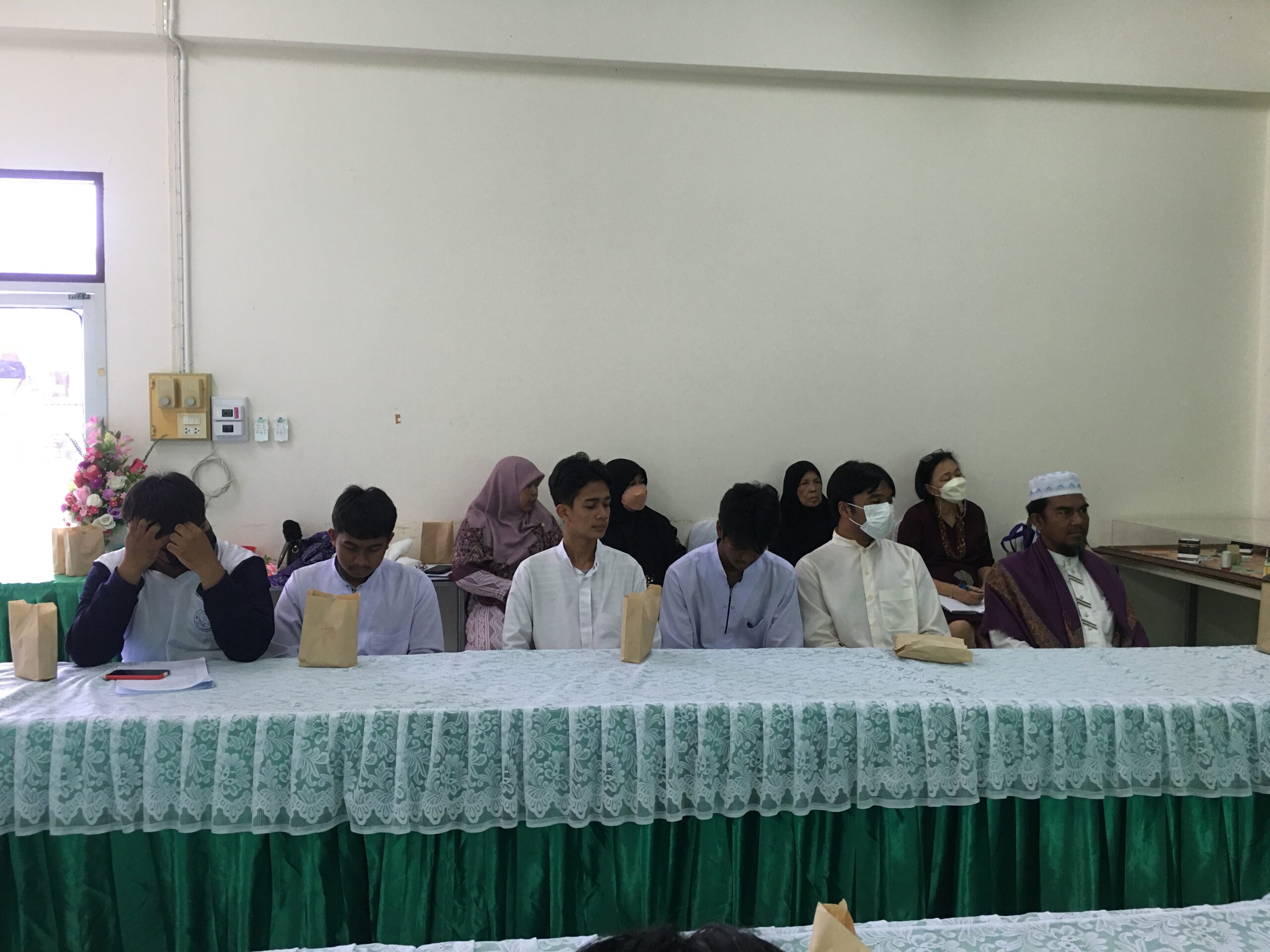 The course therefore organizes learning activity outside the classroom at Al-Muvahhideen School and Klong Din Community. The speakers were Ajarn Basri Darakai, School Manager, Ajarn Manat Darakai, Assistant School Manager, Ajarn Padta Darakai, School Director, and students in Grade 11 who gave knowledge to the students about the history of Islam religious principles and important religious activities, especially the funeral. The history of Al-Muvahhideen School and Ban Khlong Din Community, Na Khian Sub-district, Mueang District, Nakhon Si Thammarat Province were included in the lecture contents as well. The activity was held on Friday, February 17, 2023, from 1:00 PM – 4:00 PM, at Al-Muvahhideen School. There were 12 faculty members and students participating in this activity.