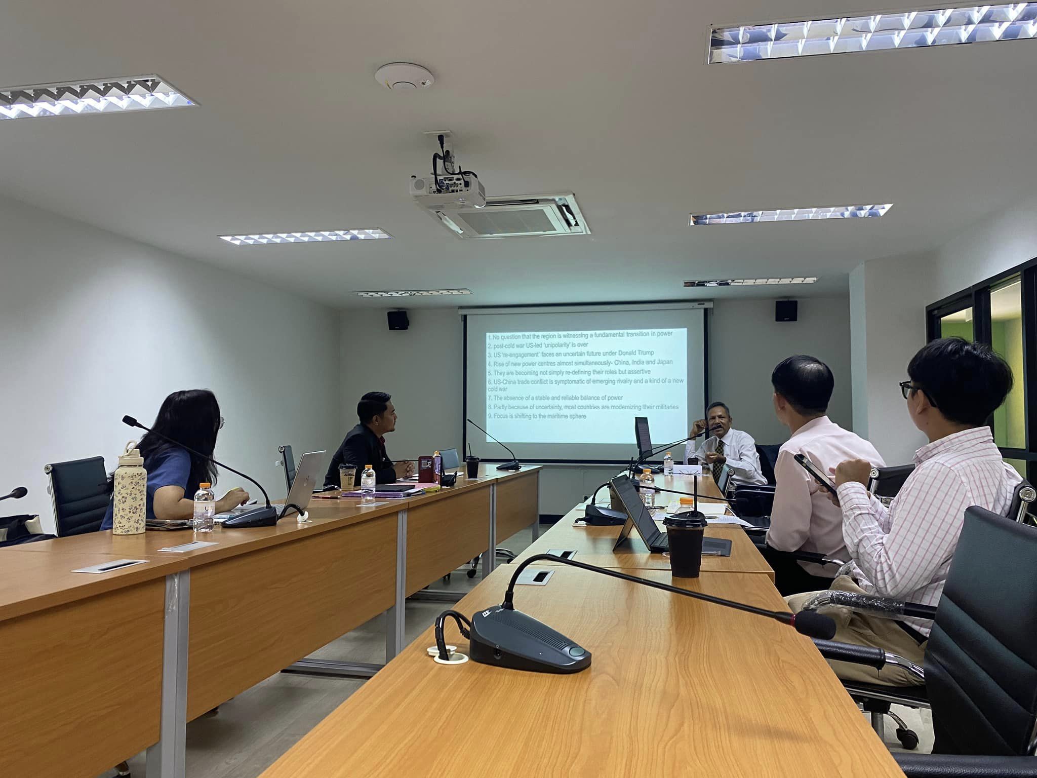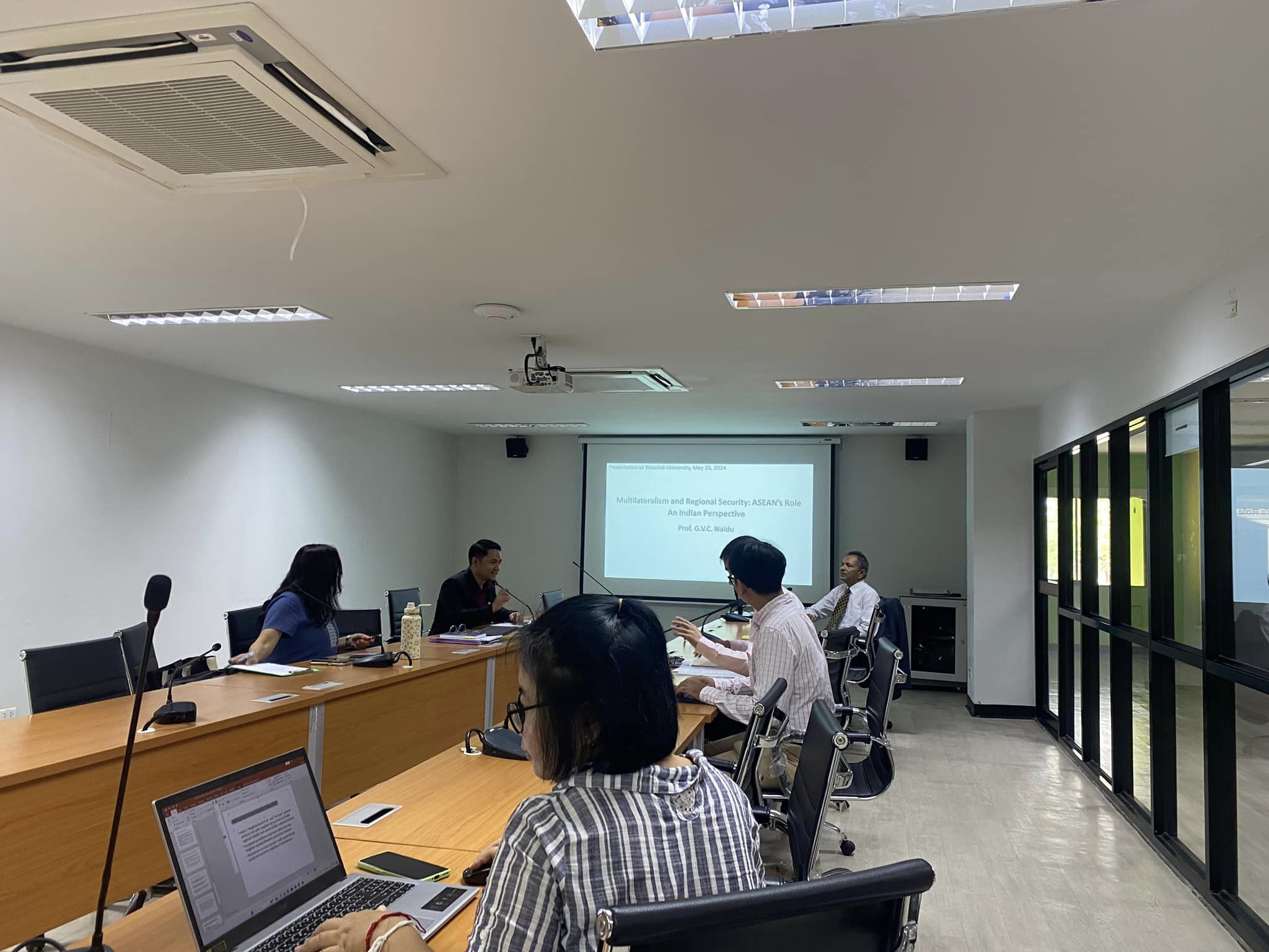 On Monday, May 20, 2024, from 10:00 to 12:00 in Meeting Room 2 of Academic Building 5, the Political Science Program’s International Relations Major and the Center for Geosocial and Cultural Research for Sustainable Development, led by Assistant Professor Dr. Siriporn Somboonburana, jointly collaborated to host an exclusive forum for staff members to expand their knowledge further. Professor Dr G. Vijayachandra Naidu of Jawaharlal Nehru University, India, was invited to deliver a special lecture on “Multilateralism and Regional Security: ASEAN & South Asia” to facilitate the subsequent discussions and exchanges.