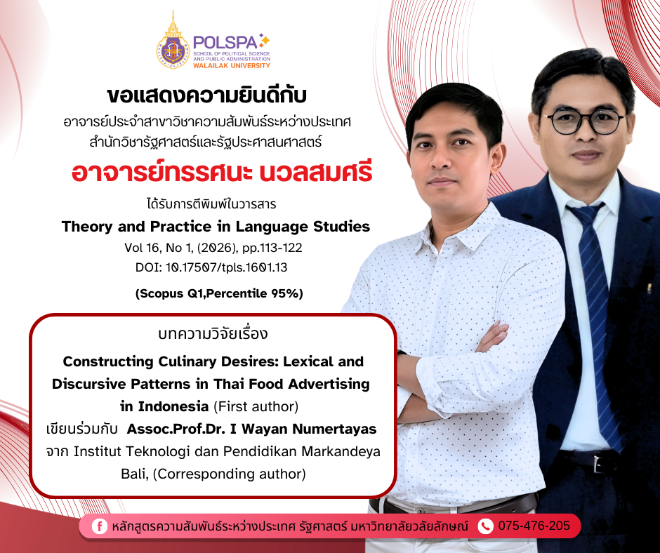 สังกัด : หลักสูตรความสัมพันธ์ระหว่างประเทศ สำนักวิชารัฐศาสตร์และรัฐประศาสนศาสตร์