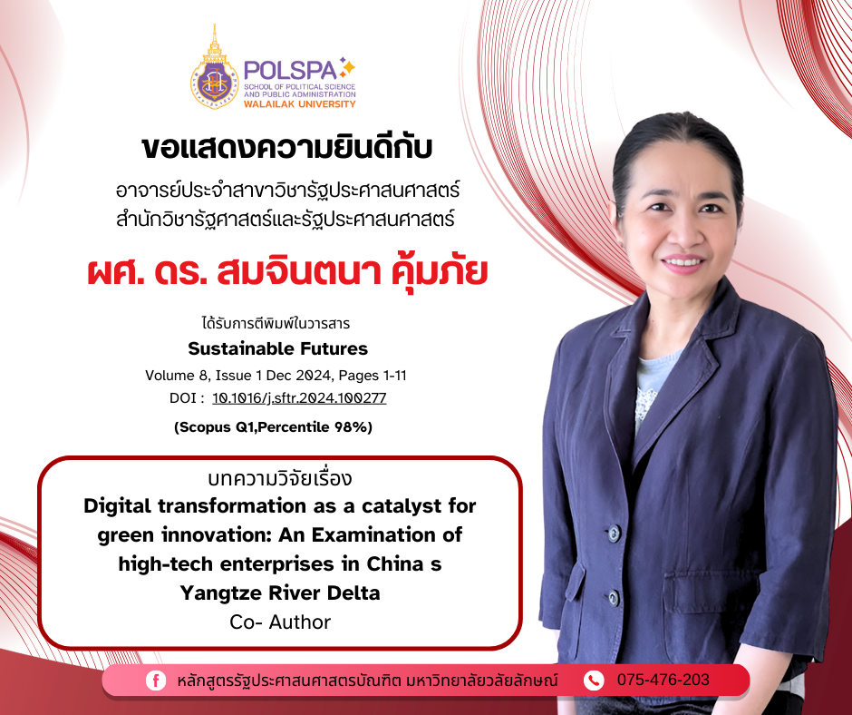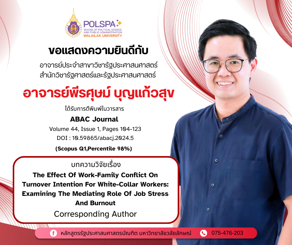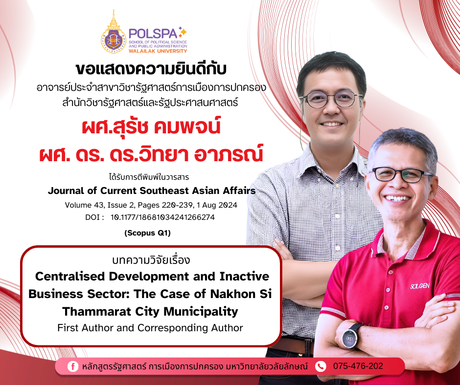 สังกัด : หลักสูตรรัฐประศาสนศาสตร์ สำนักวิชารัฐศาสตร์และรัฐประศาสนศาสตร์