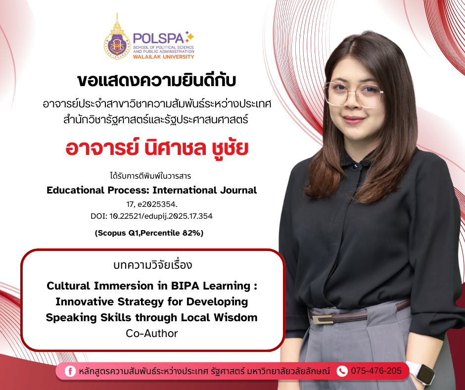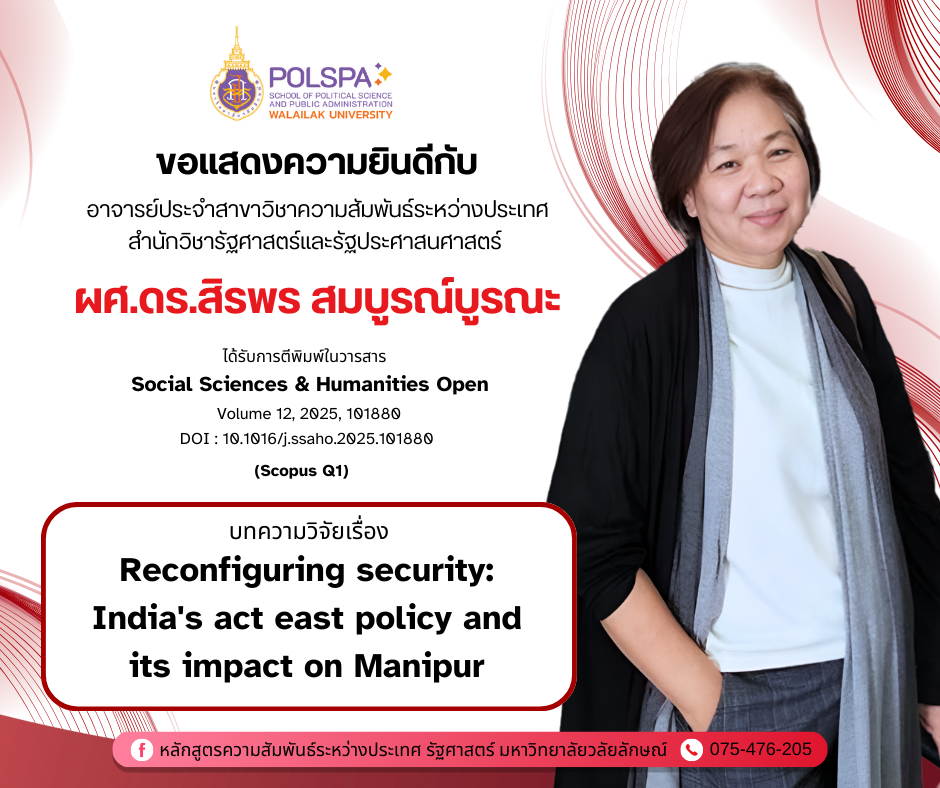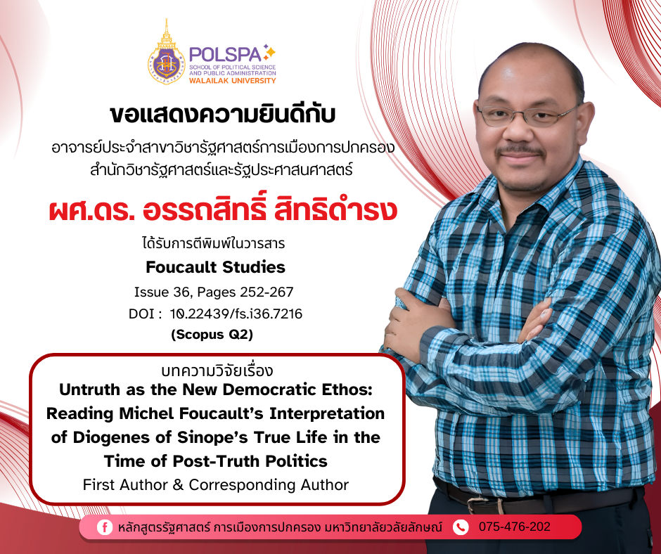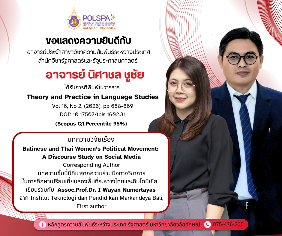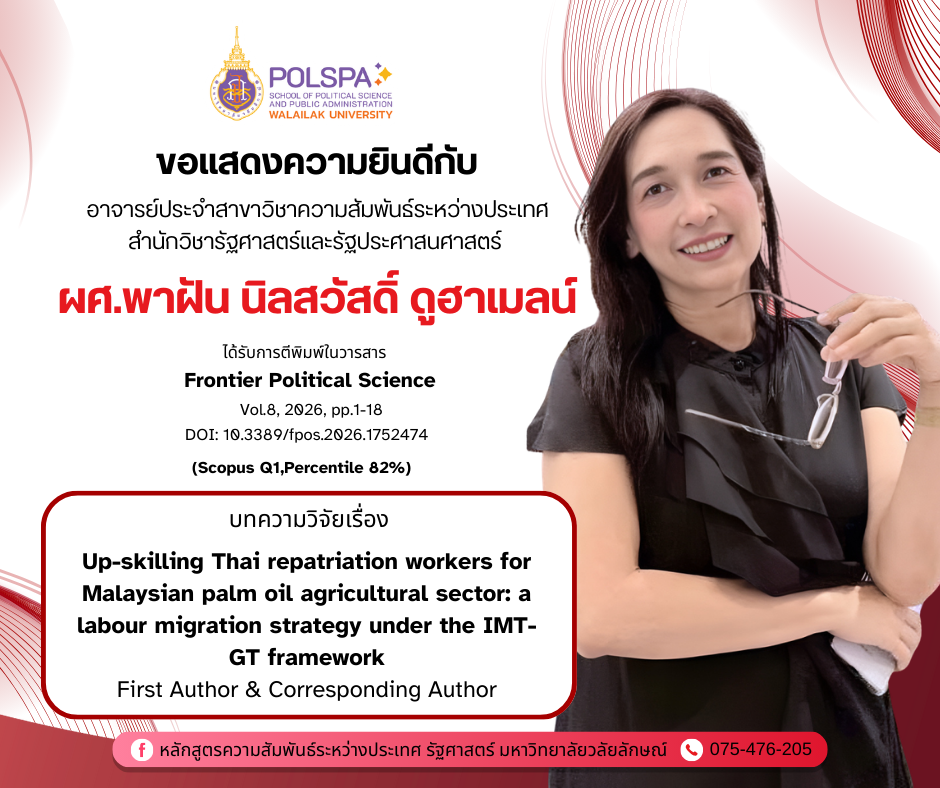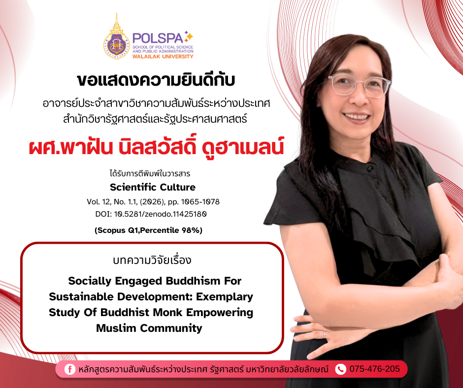 สังกัด : หลักสูตรรัฐศาสตร์การเมืองการปกครอง สำนักวิชารัฐศาสตร์และรัฐประศาสนศาสตร์