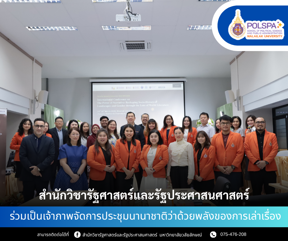 สำนักวิชารัฐศาสตร์และรัฐประศาสนศาสตร์ มหาวิทยาลัยวลัยลักษณ์ ในการร่วมเป็นเจ้าภาพการประชุมนานาชาติว่าด้วยการเล่าเรื่อง “The Power of Narrative” Read More » มีนาคม 26, 2026